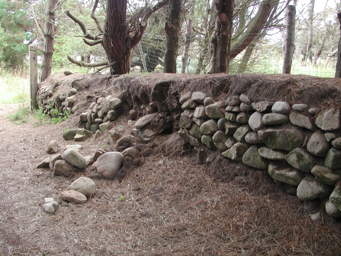 Vue du talus mur en galets éboulé entre Pors Bugale et la Pointe du Château