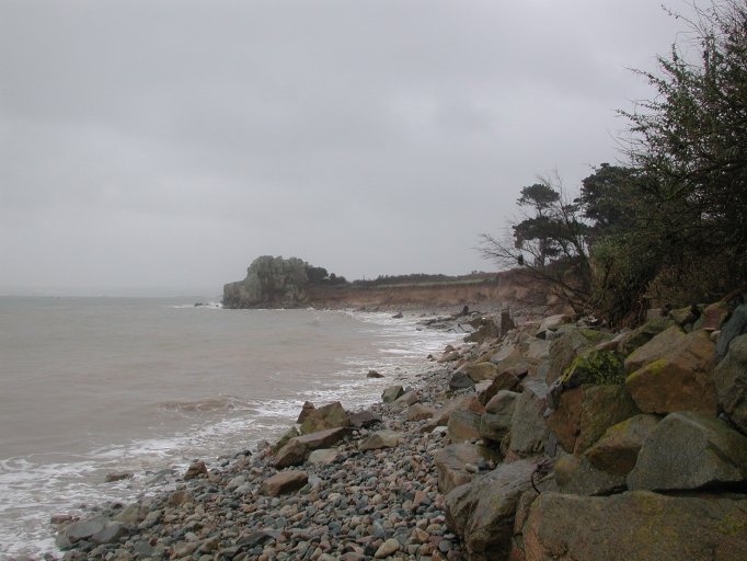 Vue des enrochements et de la micro-falaise érodée de Pors Hir, après la tempête de mars 2008Immatriculation