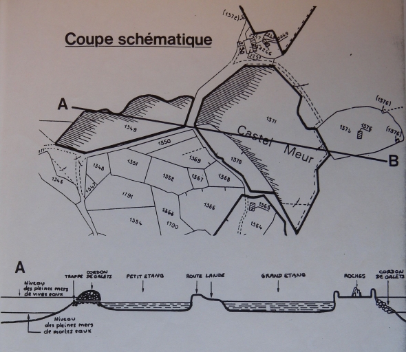 Coupe schématique du site de Castel Meur, 1989 (Conservatoire du Littoral)Immatriculation