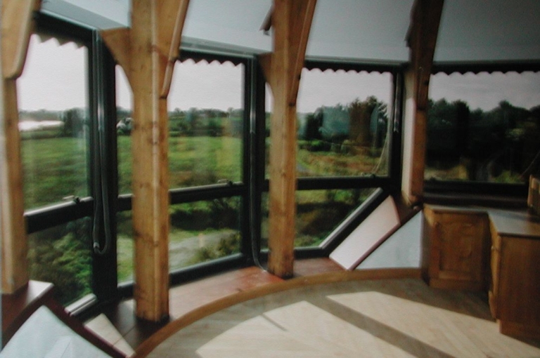 Vue du l'intérieur du moulin rénové, au niveau du 2ème étage, transformé en salon (collection particulière)Immatriculation