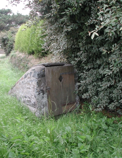 Vue de la fontaine de Poull Stripo : remarquer l'édifice en forme de trou de souffleur, fermée par une porte en boisImmatriculation