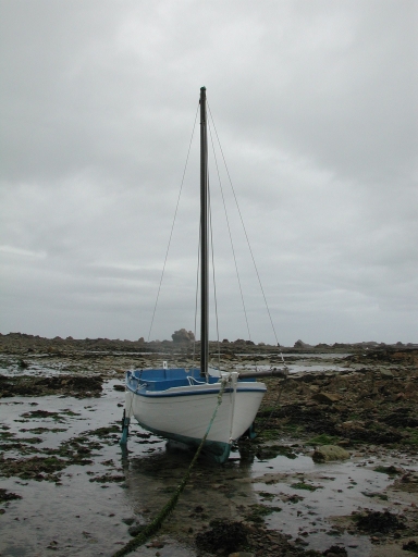 Vue d'un petit sloop creux sur la grève de Pors Hir, PL 191871Immatriculation