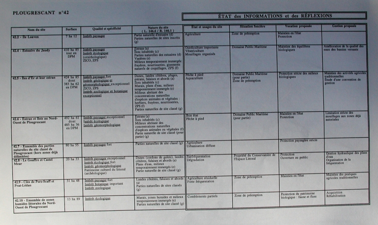 Etat des informations et des réflexions sur les sites littoraux remarquables de Plougrescant (DIREN Bretagne)Immatriculation
