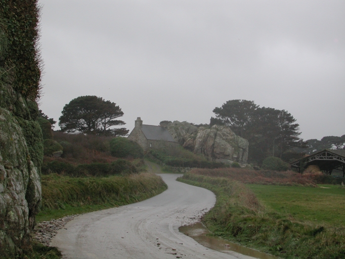 Bâti littoral en front de mer de Pors Bugale : remarquer l'insertion du bât dans l'environnement rocheux du siteImmatriculation