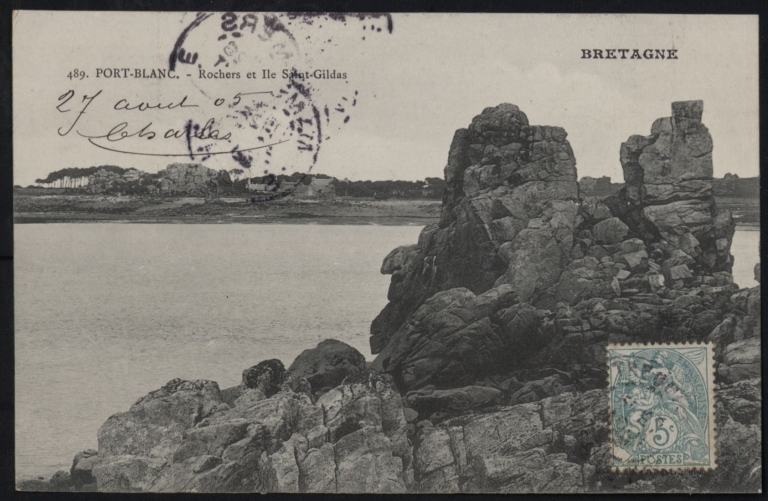 Les rochers de l'Île Saint-Gildas vers 1904-1908 (carte postale, AD 22)Immatriculation