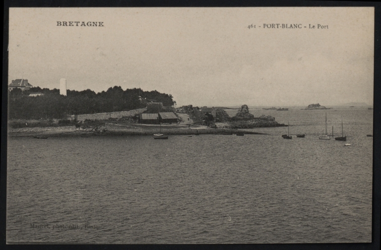 Le port avec la cale-débarcadère et le quai, début 20e siècle : remarquer en arrière plan la tourelle amer du Voleur (carte postale, AD 22)Immatriculation