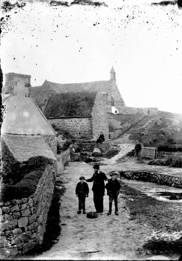 Vue de la descente de la chapelle de Port-Blanc : remarquer l'ancien lavoir au pied de l'escalier (1er quart 20ème siècle (fonds Bouillé, AD22)Immatriculation