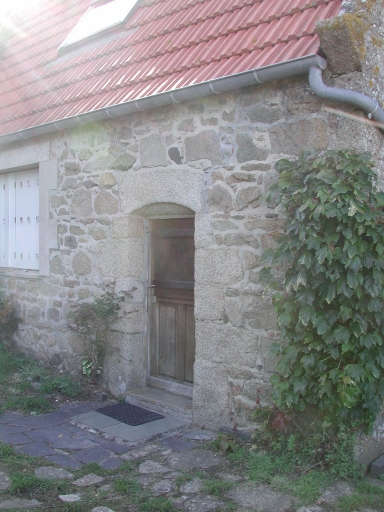 Vue de la façade Sud de la maison : remarquer le sol dallé et la porte en plein cintreImmatriculation