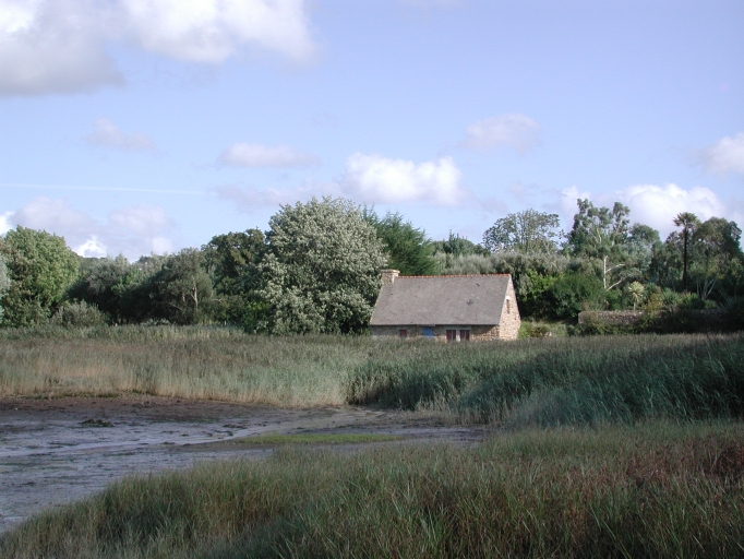 Vue de l'ancien moulin à marée avant restauration dans les herbus de la baie de PellinecImmatriculation