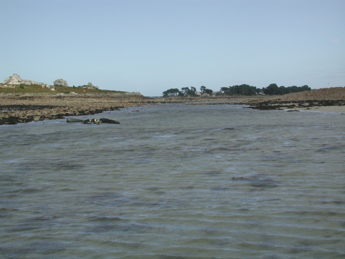 Vue du double barrage de la pêcherie entre l'île Saint-Gildas et l'île MarquerImmatriculation