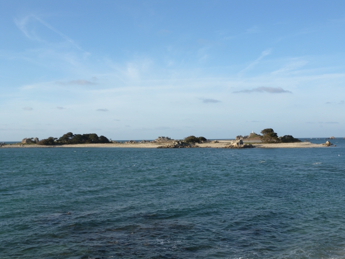 Vue générale à marée haute de l'Île aux Femmes : remarquer sa forme allongéeImmatriculation