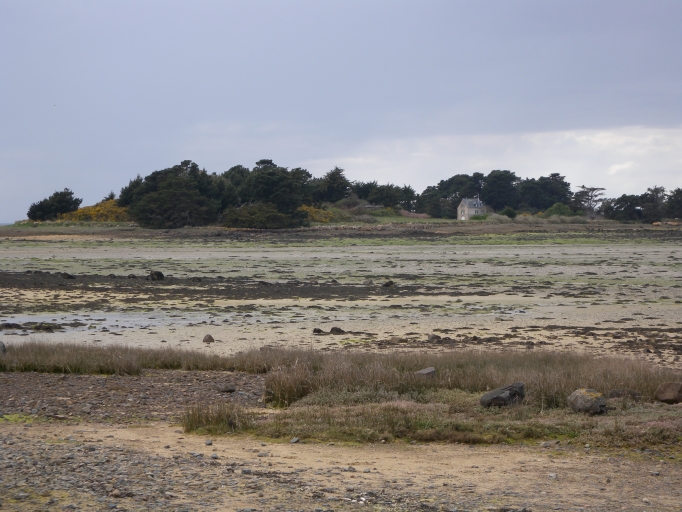 Vue de la partie Sud de l'île Marquer : remarquer la partie Ouest très boisé et le bâti isoléImmatriculation