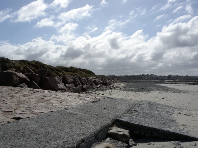Vue des enrochements entre Crec'h Avel et le Launay, depuis la cale du campingImmatriculation
