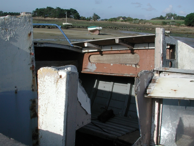 Vue de la charpente intérieure : alternance entre membrures franches et membrures ployéesImmatriculation