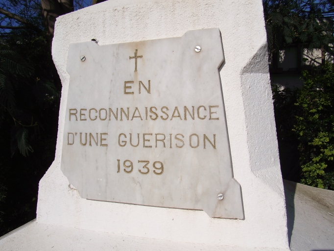 Face antérieure du socle (inscription commémorative)Immatriculation