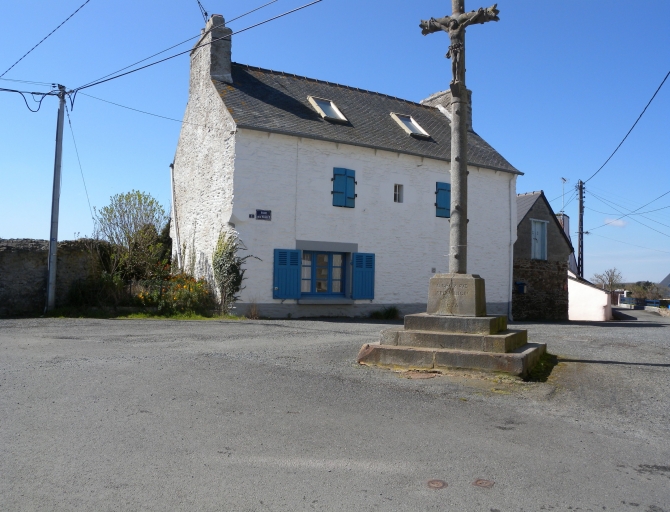 La place du hameau de la Ville Louais avec sa croix datée de 1874 et la grande maison de la placeImmatriculation