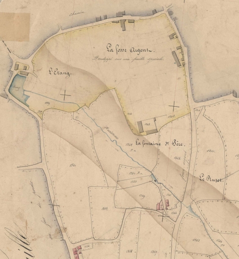 Extrait du cadastre de 1813, section E 4ème feuille : la fontaine St-Père, l'étang et le lavoir du Ruset (AD 22)Immatriculation