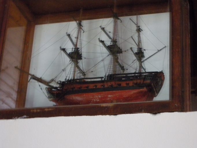 Vue générale de l'une des maquettes, du type trois-mâts barque, navire de guerre du 18ème siècle ou début du 19ème siècleImmatriculation