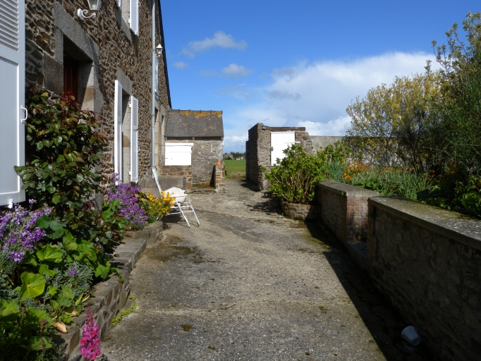 Vue de la façade Sud donnant sur une courette et un jardin : remarquer la crèche à cochon en angle et le puitsImmatriculation
