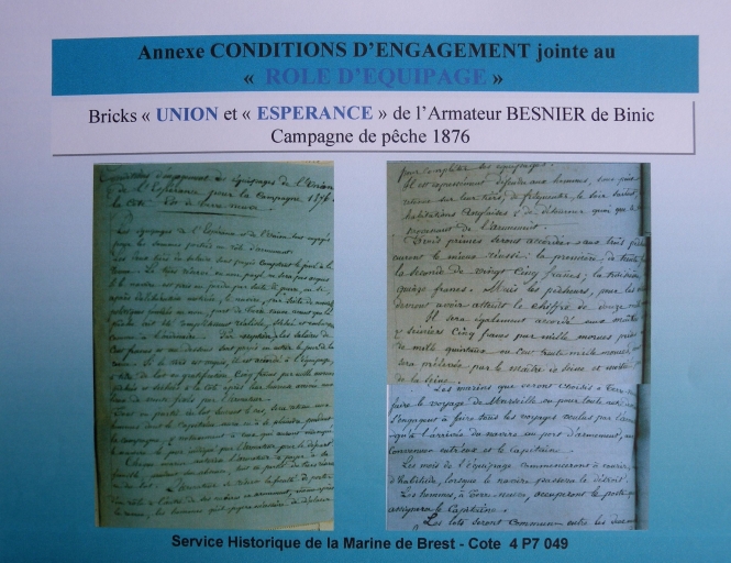 Bricks 'Union' et 'Espérance' de l'armement Besnier de Binic, campagne de 1876, SHM Brest, cote 4 P7 049 (reproduction, montage, Jacques Hervé)Immatriculation
