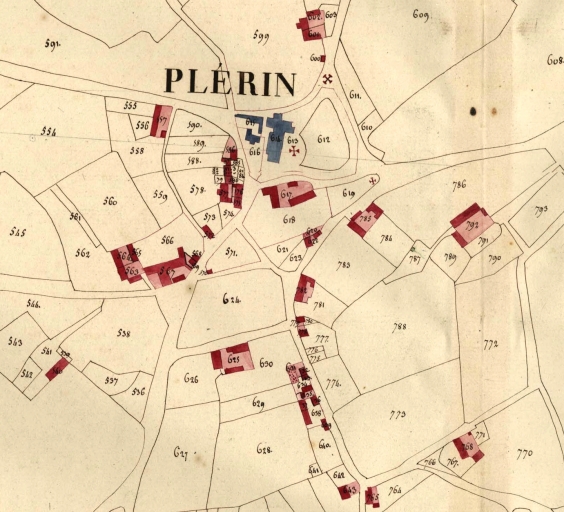 Le bourg de Plérin d'après le cadastre de 1813 (AD 22)Immatriculation