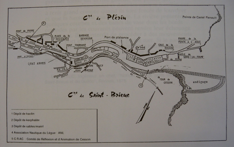 Nouveau plan du port du Légué, avec les aménagements portuaires en 1992 (Direction Départementale de l'Equipement 22)Immatriculation
