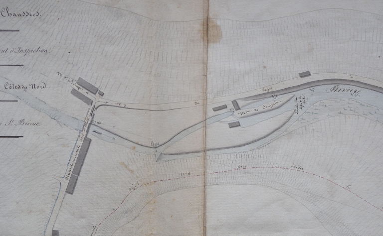 Avant-projet de bassin à flot en 1839 : remarquer le bassin à flot et le moulin de Souzin (AD 22)Immatriculation