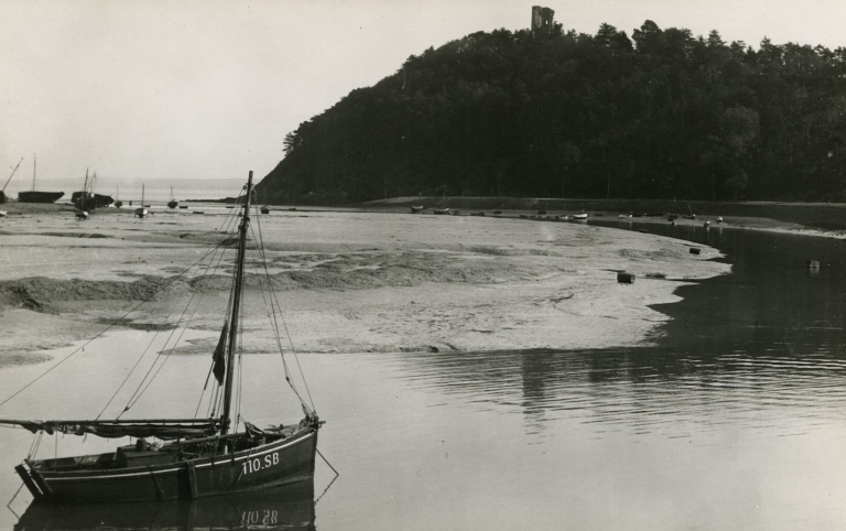 Vue des bateaux de pêche de sous-la-Tour, vers 1950 : remarquer l'envasement progressif du Gouët canalisé (AD 22)Immatriculation