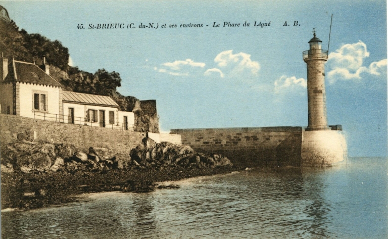 Vue de la maison du gardien de phare de l'Aigle à l'extrémité de la digue, vers 1910-1920 (carte postale, AD 22)Immatriculation