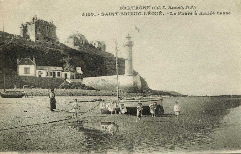 Vue de la maison du gardien de phare de l'Aigle à l'extrémité de la digue, vers 1917 (carte postale, AD 22)Immatriculation