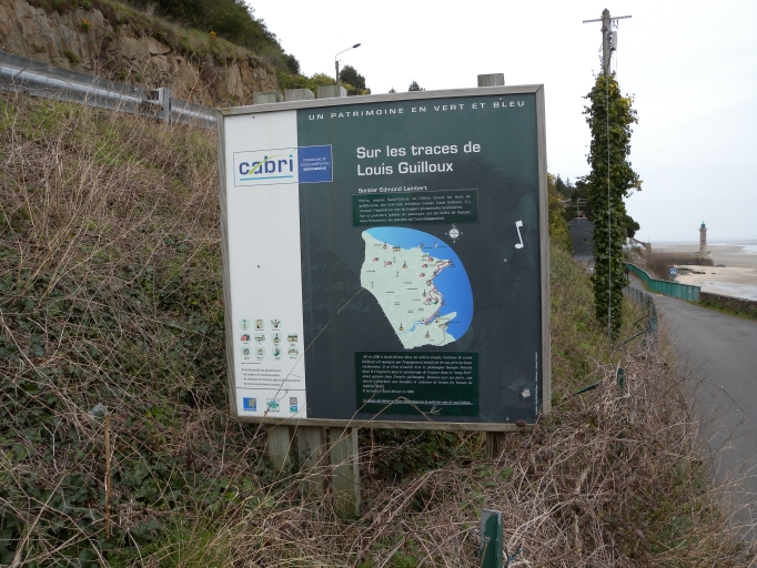 Panneau d'interprétation du sentier 'Edmond Lambert', sur les traces de Louis Guillou, qui conduit au phare et à la corniche de la falaiseImmatriculation