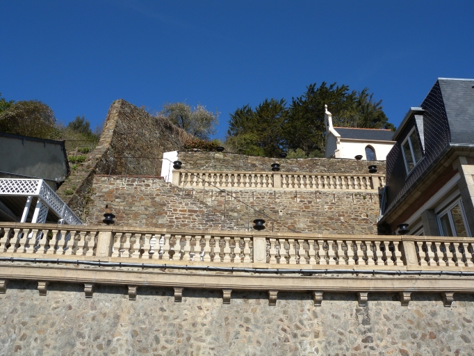 Vue des escaliers et des terrasses ouvragées conduisant à la chapelle 'Sous-la-Tour'Immatriculation