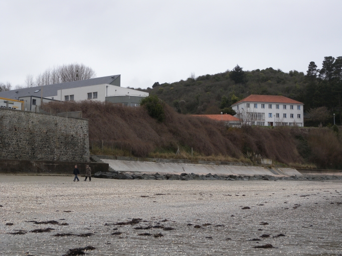 Vue du site de Port-Aurel : mur de soutènement et de défense, forme de digue pour protéger le Préventorium, site archéologique (bâtiment thermal gallo-romain)Immatriculation