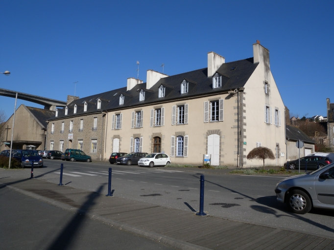 Vue d'une ancienne maison d'armateur, à plusieurs travées, devant les quais du chanoine Guinard (bâtiments du Conservatoire du Littoral)Immatriculation