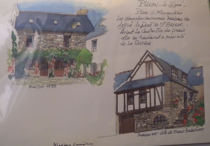 Dessin de Nicolas Cornélius : les deux plus anciennes maisons en front de port du havre du Légué (collection particulière)Immatriculation