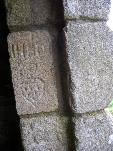 Vue de la pierre maçonnée et sculptée servant de contrefort intérieur au niveau de l'ouverture principale (à droite)Immatriculation