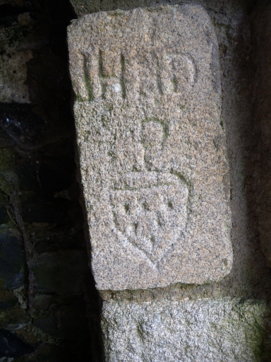 Vue de détail des armoiries sculptées dans la pierre maçonnéeImmatriculation