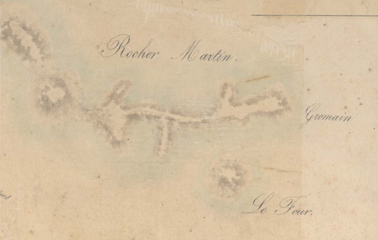 Extrait du cadastre de 1813, section B 3ème feuille : le site du Rocher-Martin (AD 22)Immatriculation