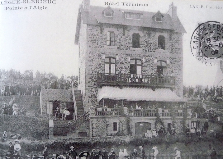Vue de la station du chemin de fer du phare de la Pointe de l'Aigle, l'Hôtel du Terminus, 1909 (Laurent Goulhen, collection particulière)Immatriculation