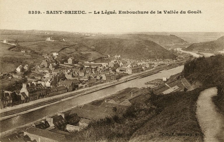 Vue de l'embouchure de la vallée du Gouët en 1917 (carte postale, AD 22)Immatriculation