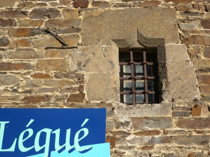 Vue de détail d'une petire ouverture en anse de panier, fermée par une grille en fer forgéImmatriculation