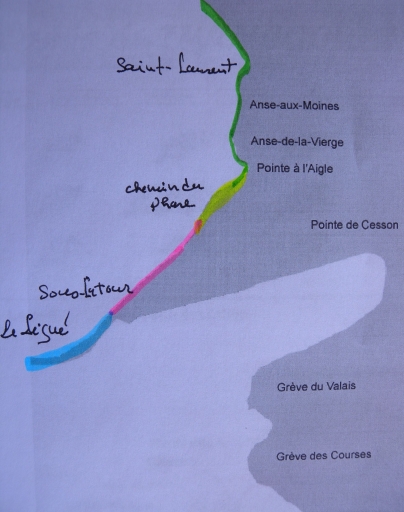 Dessin : représentation schématique du front de mer entre Sous-la-Tour et le chamin du phareImmatriculation