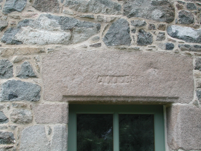 Vue des inscriptions gravées sur le linteau de la porte d'entrée SudImmatriculation