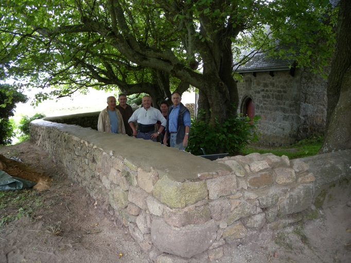 Vue de l'équipe d'ouvriers bénévole de l'association de sauvegarde du patrimoine local, après la réfection des murs de l'enclosImmatriculation