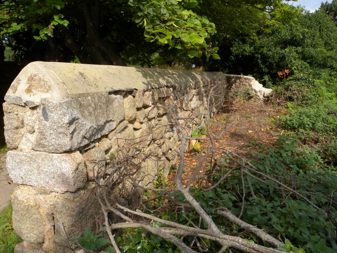 Vue du mur d'enclos de la chapelle, restauré récemment par une association localeImmatriculation