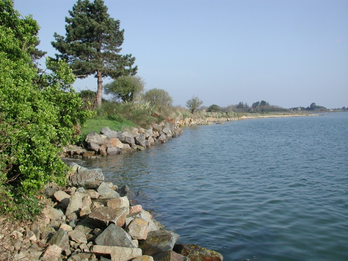 Vue des enrochements récents dans le prolongement des murets littoraux de la baie de LanrosImmatriculation