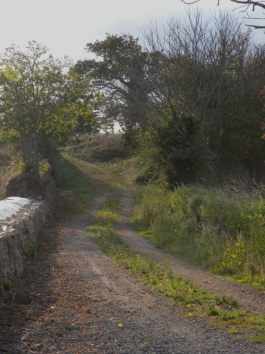 Vue du sentier qui conduit de Pors Guyon au bourg et au randogîteImmatriculation