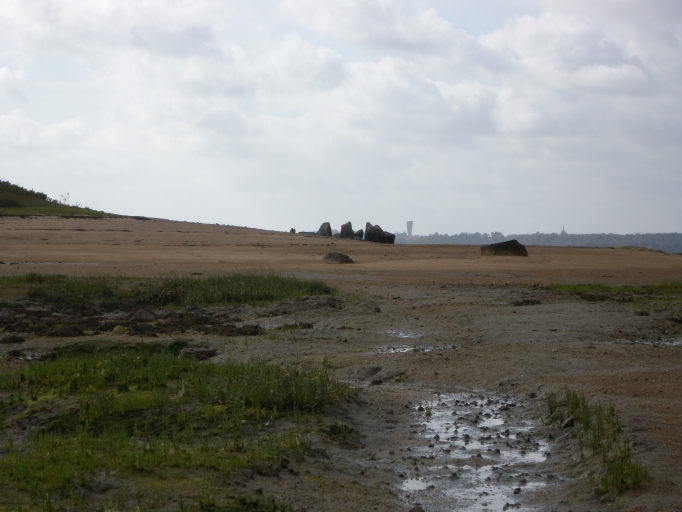 Vue de l'Île Coalen à marée basse avec l'allée couverteImmatriculation