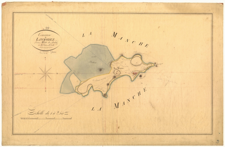 Extrait du cadastre de 1827 : la pêcherie cadastrée de d'Île Maudez (AD 22)Immatriculation