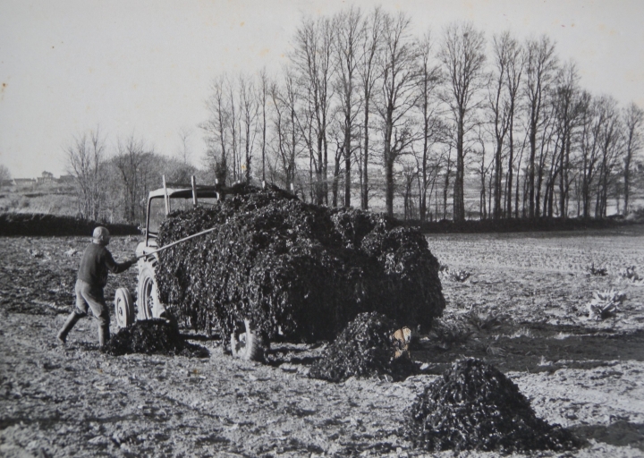 Le goémon est étalé sur le champ pendant l'hiver, avant de planter les pommes de terre nouvelles, 1980Immatriculation